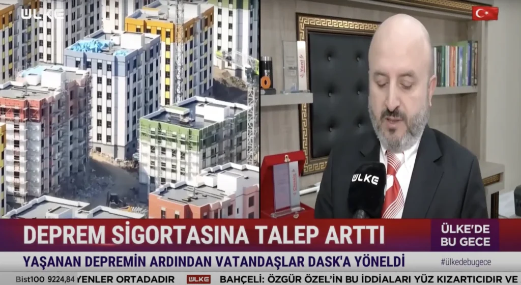ERSADER (Erdemli Sigorta Aracıları Derneği) Genel Başkan Yardımcısı Sn. İsmail OKUMUŞ, Ülke TV ekranlarında katıldığı programda “Deprem Sigortasının Önemi” başlığıyla önemli değerlendirmelerde bulundu.